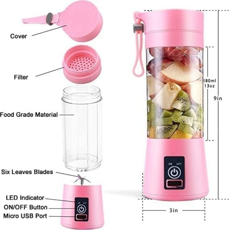 This portable USB juice blender is designed for making fresh smoothies, shakes, and juices anywhere. With rechargeable battery and compact bottle design, it is easy to carry, lightweight, and perfect for home, office, gym, and travel.